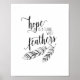 "Hope is a thing with feathers." - This motivational quote from a poem by Emily Dickinson resonates with inspiration. Hand-lettered calligraphy looking words and graphics in classic black on a white background and accented with original digital feather illustration. Contemporary mix of typography gives it a modern theme.
