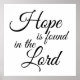 Bring peace and inspiration to your space with this elegant Christian wall art featuring the heartfelt phrase, "Hope is found in the Lord." Designed with a clean, minimalist script font, this piece makes a beautiful reminder of faith and encouragement. Perfect for living rooms, bedrooms, prayer rooms, or church spaces, it also makes a thoughtful gift for friends and loved ones seeking strength and hope in God. Ideal for modern farmhouse, rustic, or simple decor styles.