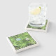 The coasters are gorgeous, a quality feel and heavy weight. They look like a precious archeological find. A rustic stone juxtaposed with a modern floral black and white print. I like the way the print goes slightly imperfect on the cut stone edges giving them a kind-of natural beauty.