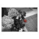 An emphasis on a single red rose in an older drying bouquet. A funeral, a token of remembrance, and through the tears a glimmer of hope.