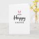 This design shows a simple white background with a cute bunny face centered on the front, its tall ears standing upright like a friendly wave 🐰. The bunny’s eyes are closed in a soft, content expression, as if sharing a quiet, affectionate moment with whoever holds the card. A small bright pink nose sits above fine whiskers, and pink accents warm the inner ears, adding a gentle romantic touch without crowding the space 🌷. Directly under the face, the word “Hoppy” is placed in a smooth, flowing black lettering style that feels relaxed and friendly. Beneath that, “EASTER” appears in uppercase black letters with a more traditional look, aligned neatly to keep the layout balanced. The wide open white space around the art and text makes the bunny’s pink details and the dark lettering stand out clearly. The inner ears show fuchsia-pink shading, and the nose is a bright pink dot at the center of the face.