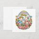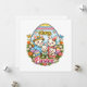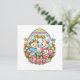 Wish your loved ones a "Hoppy Easter" with this bright and cheerful cartoon rabbit family illustration. Encased in a decorative egg-shaped frame filled with spring flowers and butterflies, this design features a sweet bunny family celebrating with colorful, patterned eggs. The bold primary colors and playful art style make this a perfect choice for kids' holiday greetings or fun family celebrations.