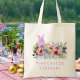 Hoppy Easter Egg Hunt Pink Bunny Wildflowers Name Tote Bag