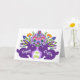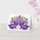 Two purple bunnies sitting in front of lilac Easter Egg and beautiful folklore flowers. Happy Easter to you in green. White background. Design inspired by polish folk-art from Lowicz region. The text on back page is fully customisable. All you need is to sign at the bottom and unique Easter card is ready to make someone smile.