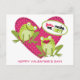Two cute cartoon frogs sit in front of a pink polka dot heart on the front of this Valentine postcard. Stylised text at the right says "You make me HOPPY". Your custom text is in matching pink at the bottom, and there is an extra text field on the back. Fun for kids of all ages! *Clip art used in this design is copyrighted by Encore Software, Inc., which permits use to its licensors. All rights reserved.