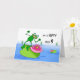 A funny and happy frog on a lily pad is featured on the cover of this I'm so Hoppy You're 9 birthday card. Cartoon illustration in greens, pinks, and blues. Frog element courtesy of OpenClipArt. Image and verse copyright © 2014, Shoaff Ballanger Studios.