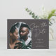 An elegant save the date design with a unique layout, this chic card features a vertical photo in an arched shape on a rich mineral earth brown background, with "save the date" in off-white hand lettered script typography. Personalise with your names, wedding date, and location, and add additional details to the back. A stunning design in a lush colour palette for announcing your wedding.