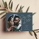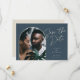 An elegant save the date design with a unique layout, this chic card features a vertical photo in an arched shape on a rich coastal blue background, with "save the date" in off-white hand lettered script typography. Personalise with your names, wedding date, and location, and add additional details to the back. A stunning design in a lush colour palette for announcing your wedding.