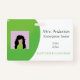 An horizontal photo ID badge for staff members of your school with a partial green apple . Personalise it with the employee's photo (a square one works best ) , name , job title , year and school name on the front . Make sure to customise it with your establishment's name and address on the back . The white rectangle is designed for the employee signature or for a code bar . A metal clip , a lanyard or a retractable are available for purchase in addition to the badge if you need one . Look into our collection to find the vertical version of this badge .