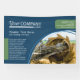 Navy blue and sage green horizontal hanging banner attractively displays your photo and business logo. This professional wall banner is a versatile look for tradeshows, job fairs, or conventions. Blue and green artistic shapes are versatile for olive green, hunter green, royal blue branding, but design elements can be changed to any other colours.