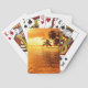 Playing cards with a horizontal palm tree hanging over the water of the pacific ocean during sunset on a tropical island.
