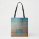 Horizontal Stripes Brown & Blue Monogram Tote Bag