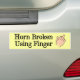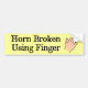 Bring a smile to those driving behind you with this fun bumpersticker that includes the text Horn Broken Using Finger and an image of the finger.