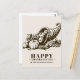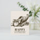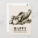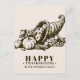 Celebrate Thanksgiving this year with this unique postcard. It features a vintage style illustration of a horn of plenty filled with fruits and vegetables. A classic symbol of a Thanksgiving feast. It sits against a light tan backdrop with your details in a similar walnut brown colour to the illustration.