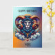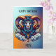 Aries Birthday card. A beautiful ai illustration of a cool looking unique mystical ram in a colourful ai illustration. Inside the card is a bunch of horoscope sign Aries information such as traits, elements and more.
