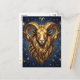 A mystical golden Ram Aries Astrology sign postcard with Aries traits on the back.
