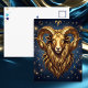 A mystical golden Ram Aries Astrology sign postcard with a metallic gold ram and a mystical starry night background.