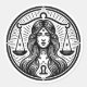 A black and white celestial Libra vector art with a beautiful woman and scale.