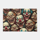 Halloween doormat. Ai art depicting gruesomely scary clown faces with sharp teeth and blank eyes.