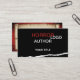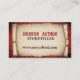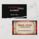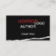 A dark and eerie business card for a horror author, featuring a torn paper effect on the front with space for a logo and title, and a weathered scroll design on the back for contact information.