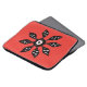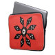 Creepy eye monster laptop sleeve with an ink drawing of witchy weird eye creature resembling a flower with many little eyes on its petals over customisable vibrant red background.