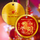 Horse 2026 Chinese Lunar New Year Red Foil Yellow Ceramic Ornament