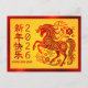 Horse 2026 Chinese Lunar New Year Red Foil Yellow Holiday Postcard