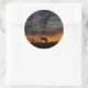 A beautiful sticker, with a horse and heritage oak trees and birds in a southwestern coloured sky.