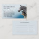 A veterinary practice business card template with a photo of a cross bred cattle dog and a dapple grey Percheron horse, cut out on a graduated blue background. The template is set up for a veterinarian, whose surgery or clinic specialises in dogs and equines but equally suitable for any business involving these animals. There are spaces for appointments on the reverse, though these lines can be customised for other text. Photography by ruralfrance.