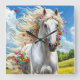 Horse and flowers square wall clock