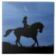 Horse and Rider Starry Night with Crescent Moon Ceramic Tile