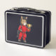 This is a standard metal lunchbox that appears to work just fine. We designed this box ourselves with an uploaded photo and custom text on the front and back. It looks absolutely beautiful except the front of the lunchbox is not centered like it shows in the photo. The print borders don't align with the inset flat part of the box where the preview photo online showed it perfectly centered in there. The back looks nice and centered though.
