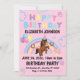 Adorable Horse Birthday Party Invitation, in pink. Customize these invitations with any text and font you'd like! These invitations are available in multiple colors to match your Horse Birthday theme and party decor! Find more Horse Birthday supplies in our shop: Hot Pocket Graphics.