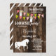 Horse party design featuring a rustic wood background texture, bunting with mason jar & white flowers, and horse silhouette. To access advanced editing tools, please go to “Personalise” and then "click to customise further" link.