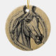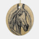 Vintage image (public domain) is a cameo style illustration of a horse with horseshoe frame. Burlap texture background