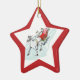 This design is a white horse pulling a red carriage through the white snow. Golden stars are placed around the carriage. A red border was added to the front and back. Give this ornament as a gift or just hang it on your tree during the holidays.