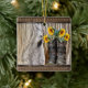 Horse Cowboy Boots Sunflowers Barn Board Ceramic Ornament