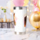 A pretty and vibrant travel coffee mug for your favourite animal lover and horse lover. This tumbler features a pretty horse on a soft pink watercolor background. Personalise the name and initial and it makes a great for yourself or a good friend. A perfect blend of style and equestrian grace for the modern woman who loves to make a statement. The soft hues of this equestrian coffee mug will give a relaxing feel to an early morning at the stables.