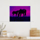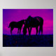 Horse & Filly at Sunset Pop Art Artwork. Beautiful horses with a colourful sunset in the background. Horse silhouettes on sunset background.