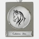 Simple drawing of a horse head in black on silver. Add name and / or date
