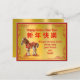Our Horse in Red Costume Chinese New Year Card shows a cute baby horse wearing a red Chinese costume. The image and text are printed on a gold foil-like background.