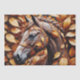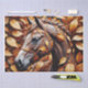 A horse surrounded by autumn leaves. The design features warm, earthy tones of brown, evoking an autumnal feel with a rich and natural atmosphere