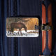 Make your luggage stand out on an airport carousel with unique tag designs! This luggage tag features a brown horse browsing for fallen apples under the white snow, against a backdrop of bare gold, yellow and orange hills. Customise the reverse side with your personal information.