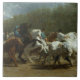 This design features a painting by Rosa Bonheur (1822–1899), who was a French artist best known as a painter of animals. It depicts dealers selling horses at the traditional horse market that was held on the Boulevard de l'Hôpital in Paris, France. The horses are being ridden to the market by the traders; it is a vigourous, lively and energetic scene, because the dynamism of the animals' movement is captured so perfectly. One of the horses is rearing up on its hind legs. There are horses with coats in every colour from dark browns to whites and greys. The original artwork was first exhibited at the Paris Salon in 1853, and it is now housed in the Metropolitan Museum of Art, New York.