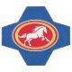 The colourful emblem features a white horse over red, gold, violet and yellow.