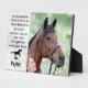 This memorial photo frame is a wonderful way to keep your pet close to your heart and cherish their memory. Whether you lost a dog, cat, horse or any other pet, this keepsake pillow is a comforting reminder of the happy times you shared together. COPYRIGHT © 2020 Judy Burrows, Black Dog Art - All Rights Reserved..Horse Memorial Personalised Equestrian Keepsake plaque