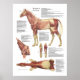 Horse muscular anatomy poster labelled with descriptions. Lateral view with superficial muscles. Deep muscles of the shoulder. Inferior view of the horse.