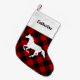 A stocking any horse-loving girl would want! A beautiful silhouette of a running horse on a classic buffalo plaid with a customisable name.