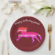 Wild pink horse silhouette drawing on paper plates. Custom background colour. Perfect for boy birthday party. Easy to add your text and name on it.