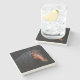 The coasters are gorgeous, a quality feel and heavy weight. They look like a precious archeological find. A rustic stone juxtaposed with a modern floral black and white print. I like the way the print goes slightly imperfect on the cut stone edges giving them a kind-of natural beauty.